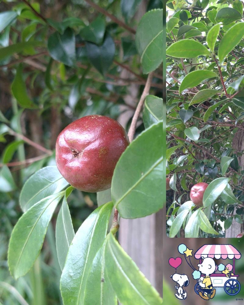 ツヤツヤのサザンカの実、りんご🍎みたいで🍎綺麗ですね😍😍