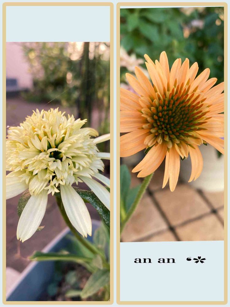 優しい色合いの2種類のエキナセアさん〜暑さに勝ち抜いた強い子達なんですね〜🥰