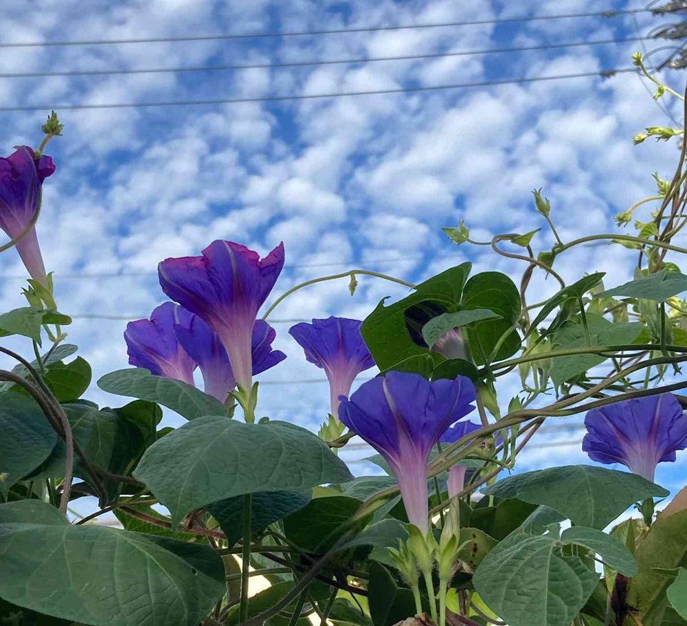 朝顔をいつもここで撮っている気がしますが、ふわふわの雲が素敵だったので🥰🎶