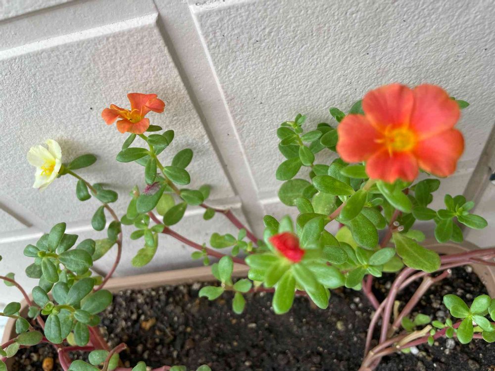 2023.9/2のポーチュラカ🤗2つで¥150で購入。花売り場に行ったら購入してしまうなー😅毎日暑く植え替え断念。。植え替え後すぐ咲き出したよ😄