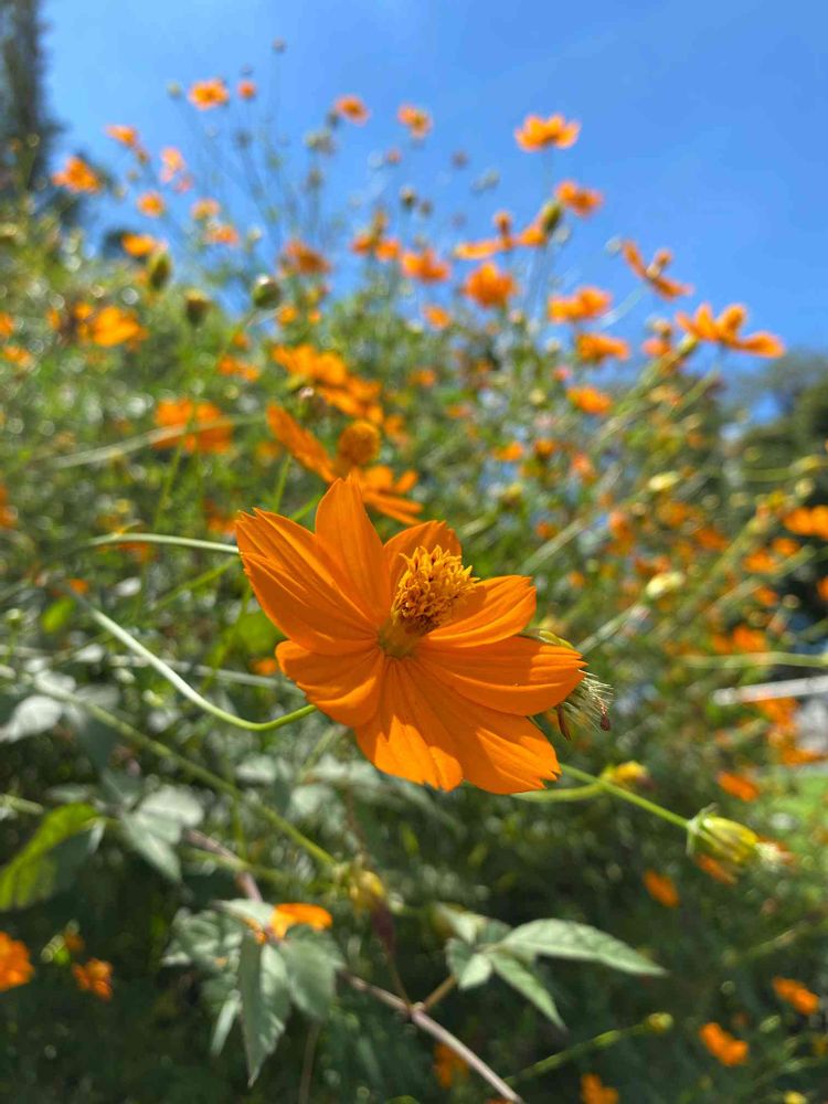 青空の下、ゆらゆらと風にゆらめきながら咲いていました。