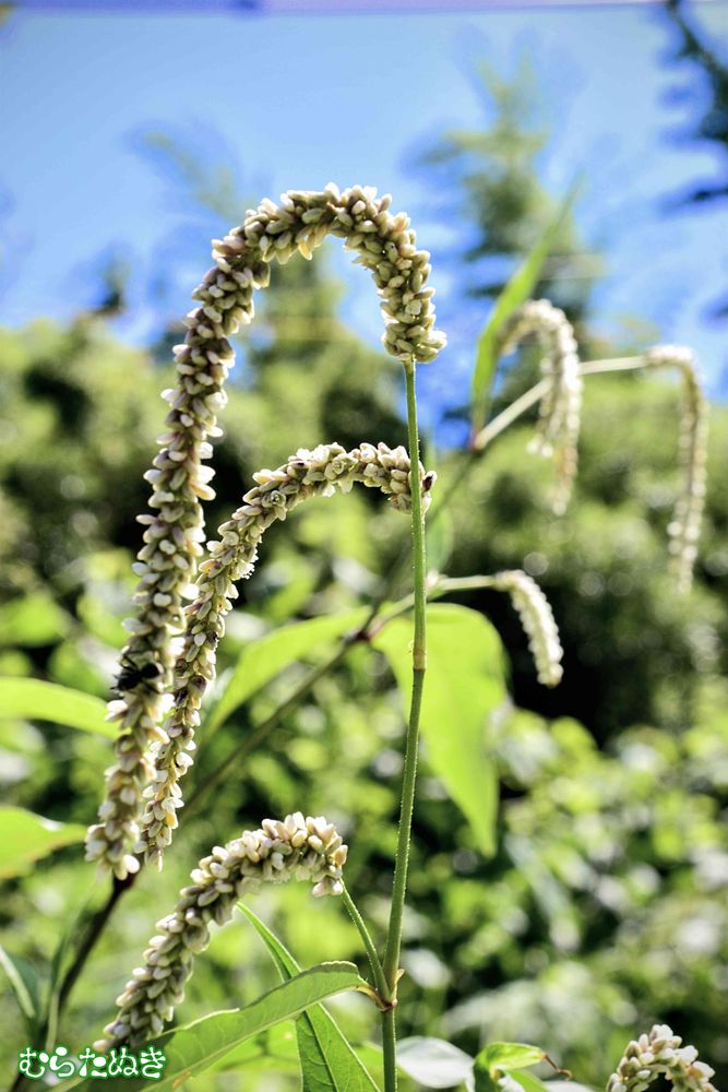 花は イヌタデの 赤色に反して 白色・・・花穂は長く 弓状になって 緩やかに垂れ下がります。