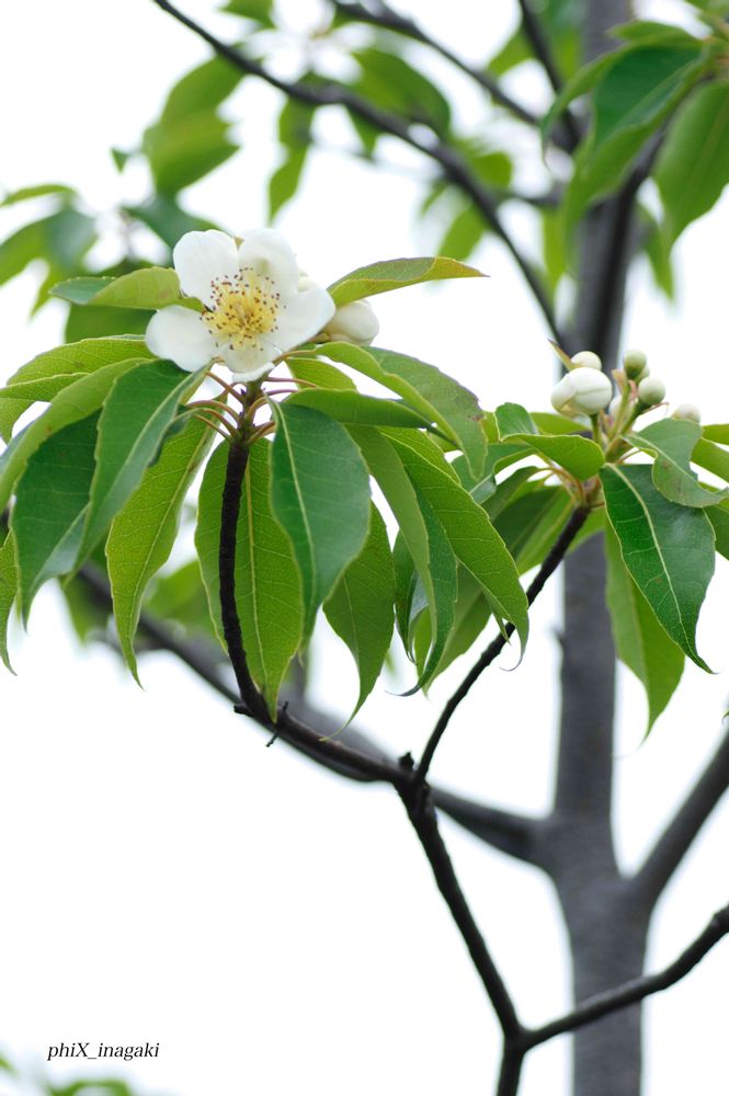 散歩中の池の端で見た樹の花です。ツボミの玉が可愛らしいです。