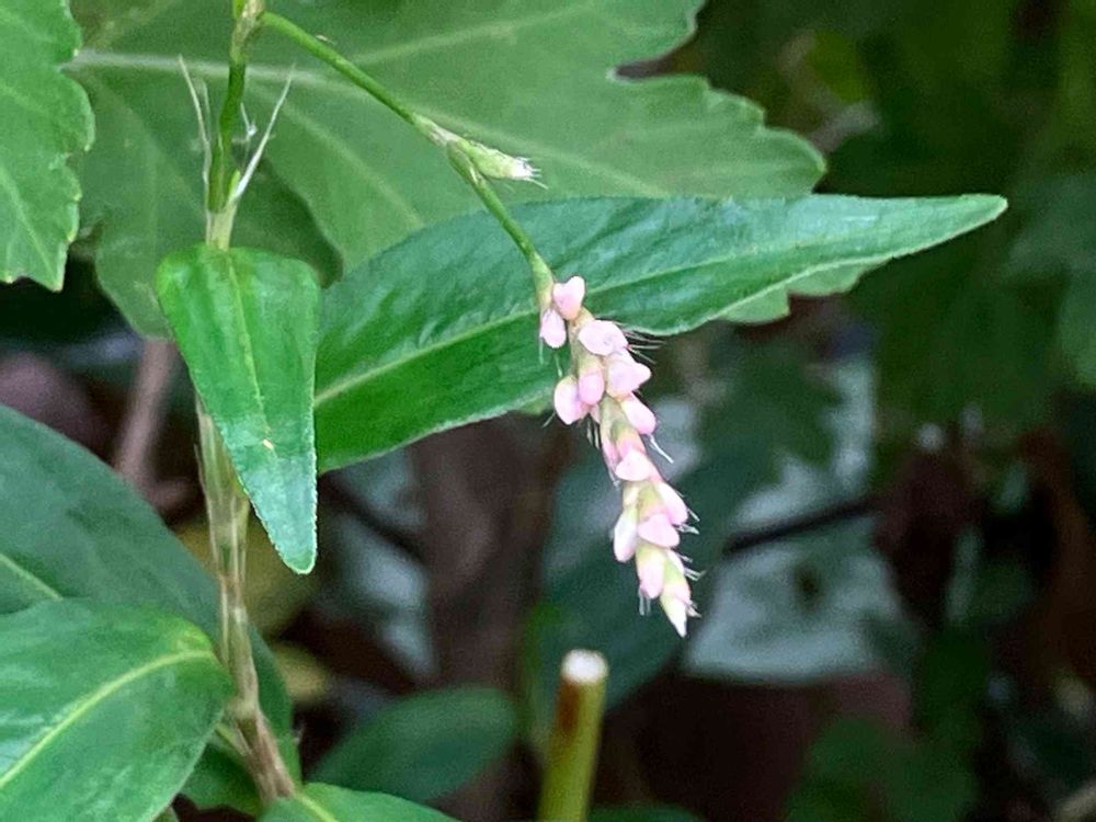 今年の夏は暑くてミズヒキが小さい花をなかなか咲かせてない傾向にあるますが、タデ属の中からイヌタデ?が一房見えてきました。