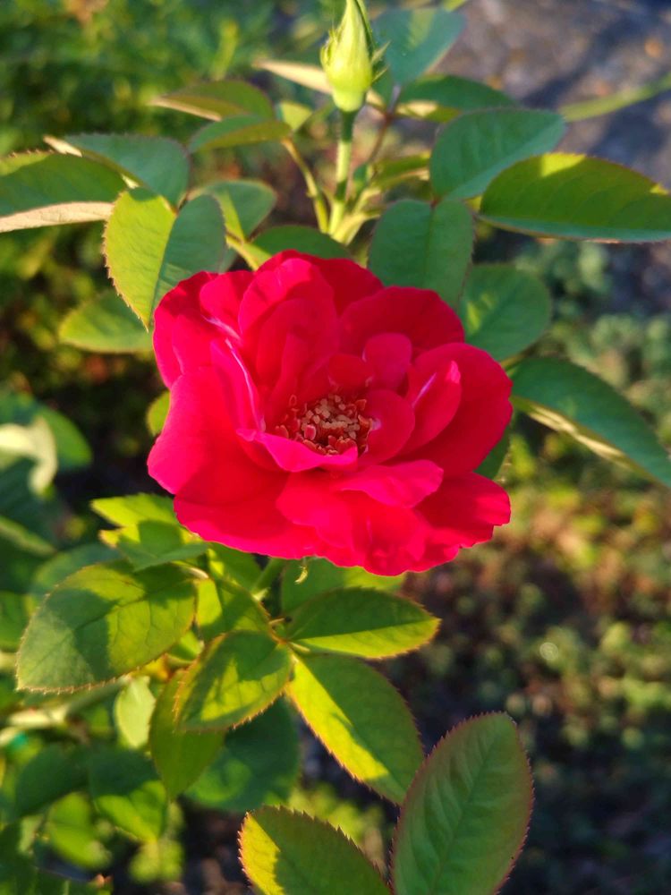 この綺麗な赤いバラは「レイ」というのですね🌹四季咲きのバラはずっと咲き続けてくれて嬉しいですよね〜♡