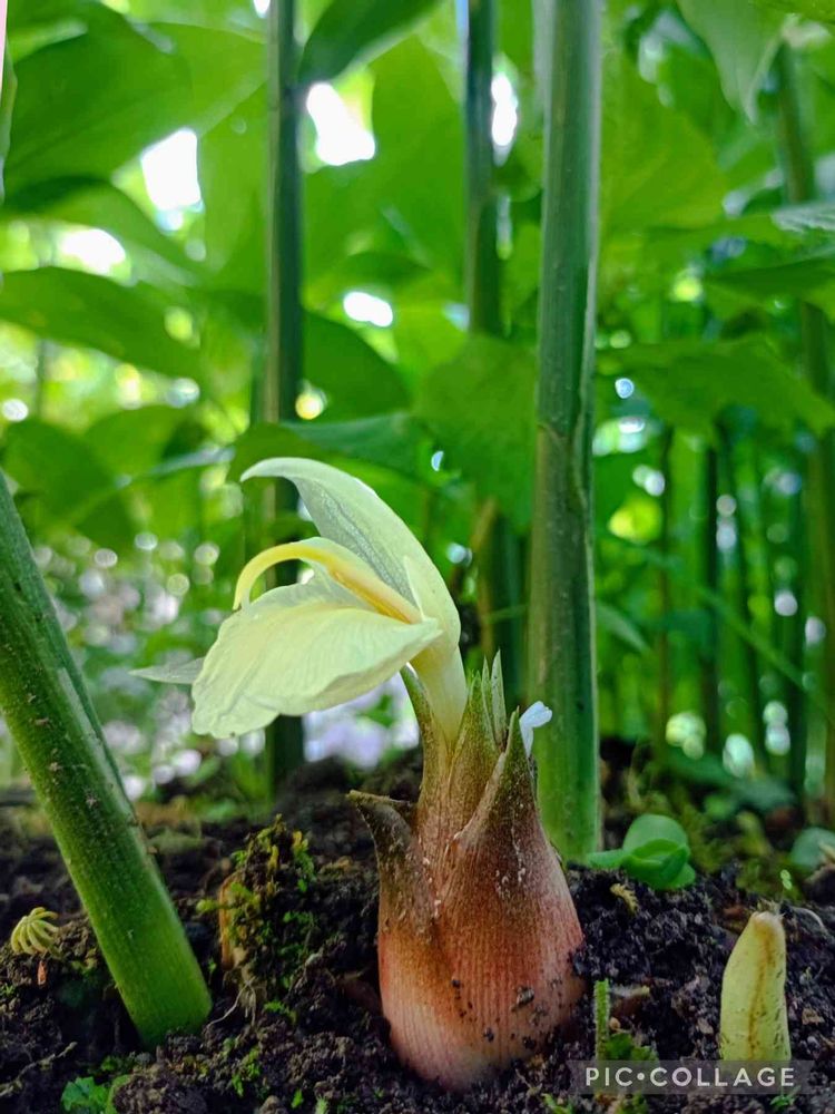 今朝 取り残したミョウガの花がいくつか咲いていたので🤳パチリ
