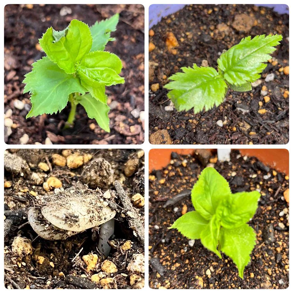 プラムは食べた種からで、ウコンザクラやウメ、アンズは公園の樹の足元に落ちてた実です(*'▽'*)