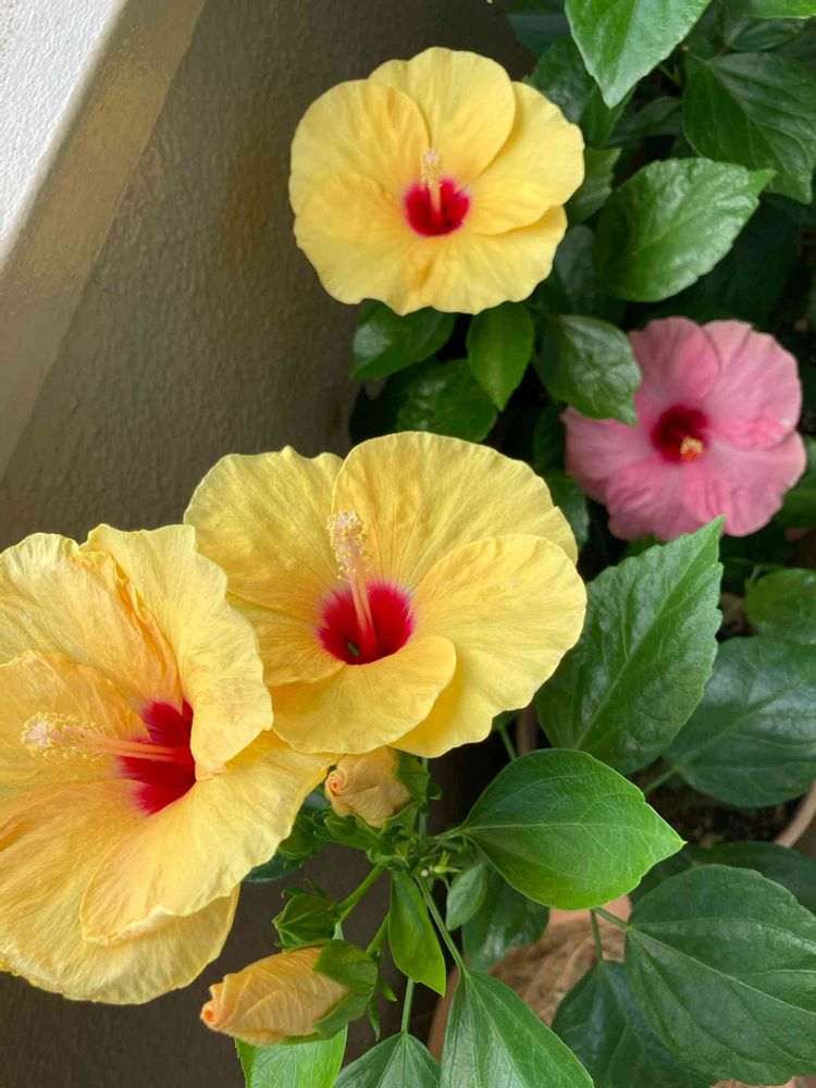 このハイビスカス達はうちに来て4〜8年になります。大きくならないように毎年冬には坊主にしますが、それでも狭いベランダは鉢だらけで洗濯物を干すスペース確保も大変です😅