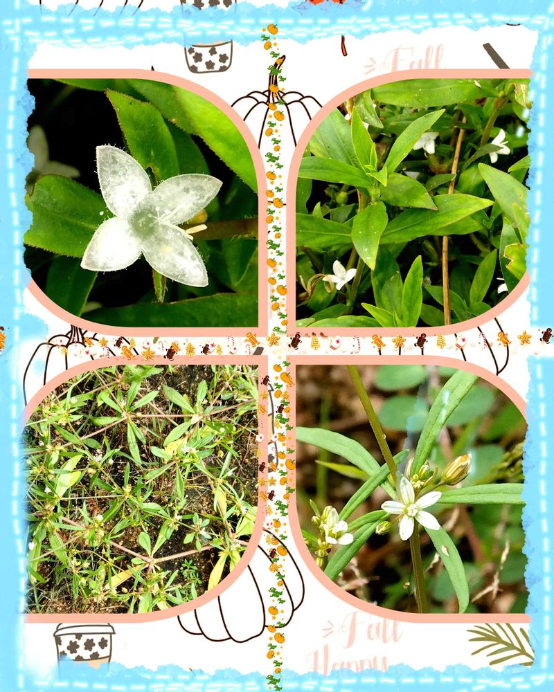 🌿葉は線形で対生。帰化植物。夏の草花。アカネ科/オオフタバムグラ属
