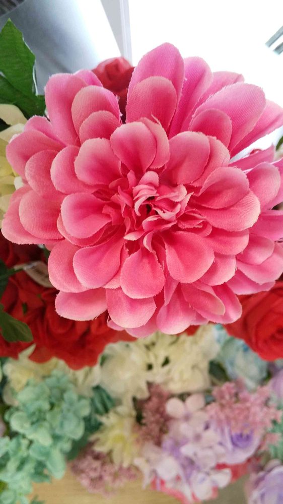 遠くのスーパーにて、ピンク色の「ダリア」のお花(造花)をパチリ!📸🌺😊😄🤗🌞👌