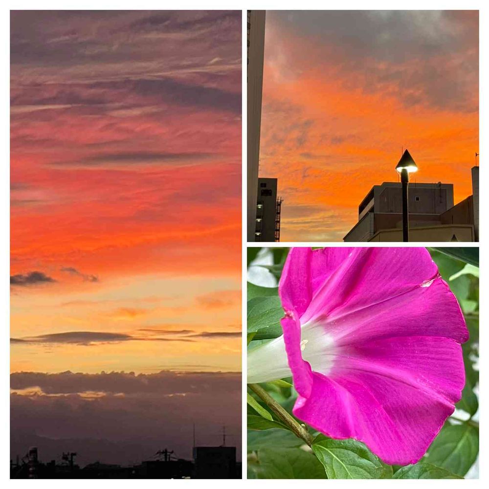 おはよう御座います😃 きのうの夕焼け 綺麗でしたね。おそろ・・日本狭くて同じ空🤣🤣