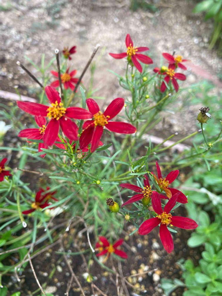 秋の気配。ずっとお休みしてたコレオプシスが、鮮やかなレッドで咲き始めました♪