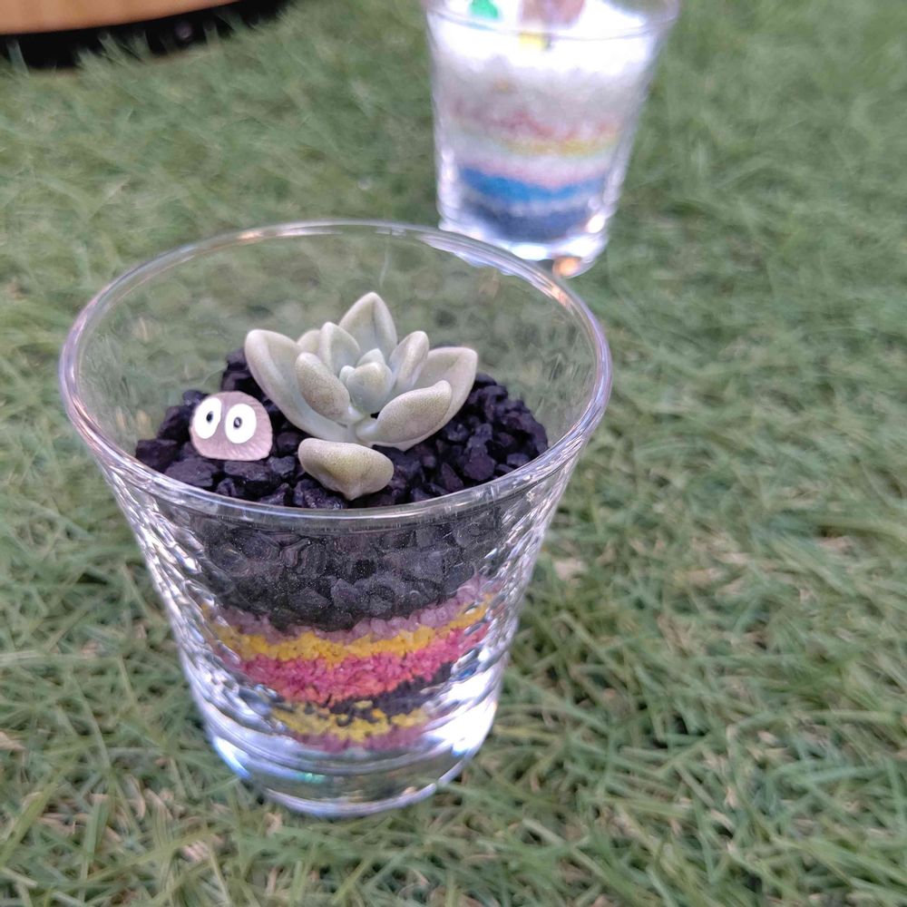 ハロウィンバージョンのカラーサンドの寄せ植えいいですね💕