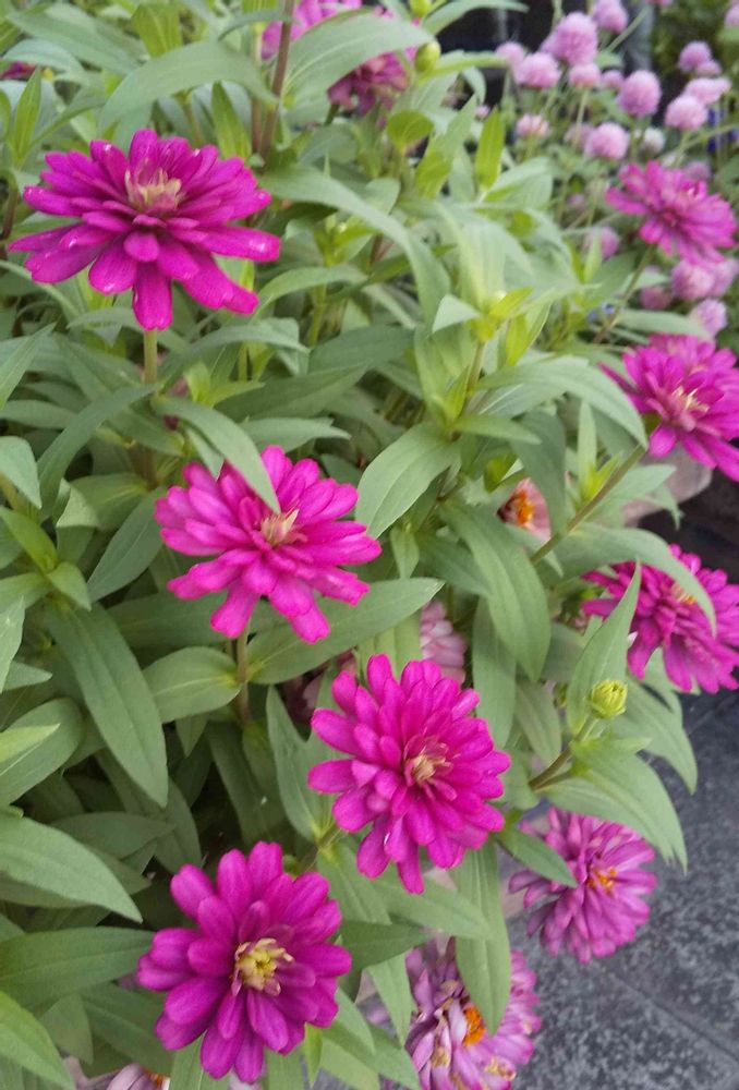 近くの市民センター前で 可愛い色のジニアが咲いていました💕
