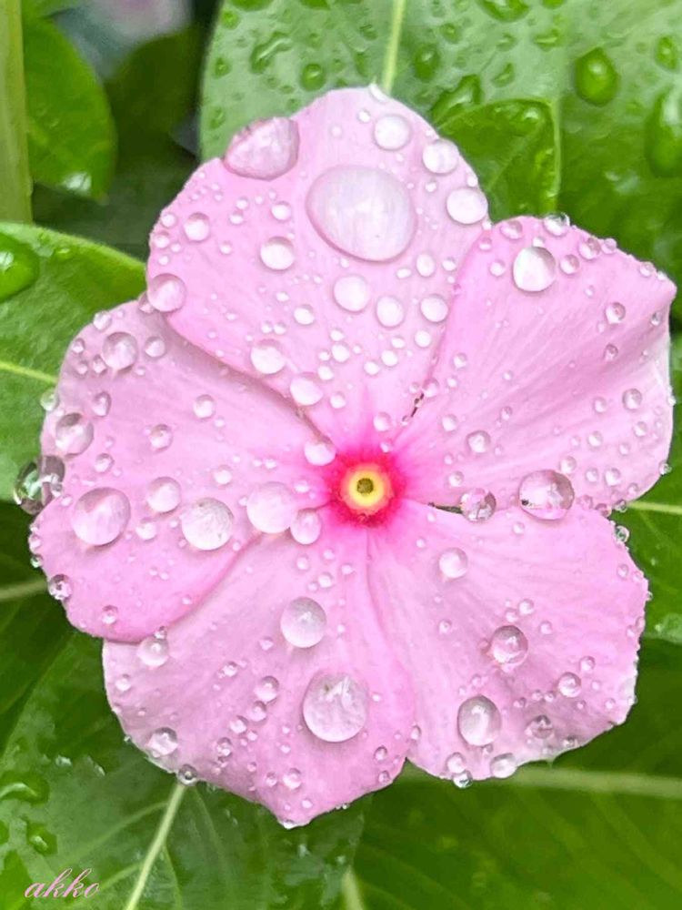 昨夜は雨が降りました☔ 玄関前でピンクの日々草が