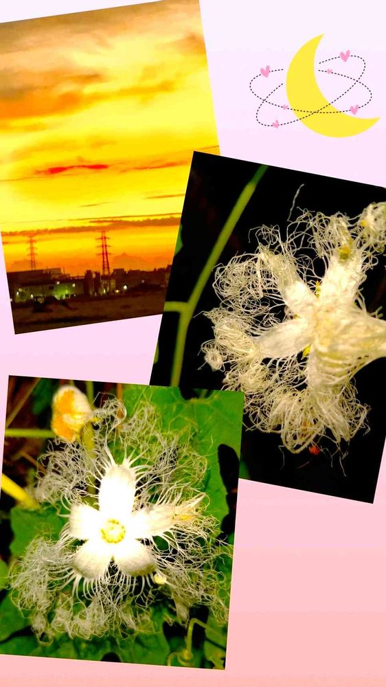 ☆昨日の夕焼けとカラスウリの花ꕤ𓈒𓂂◌