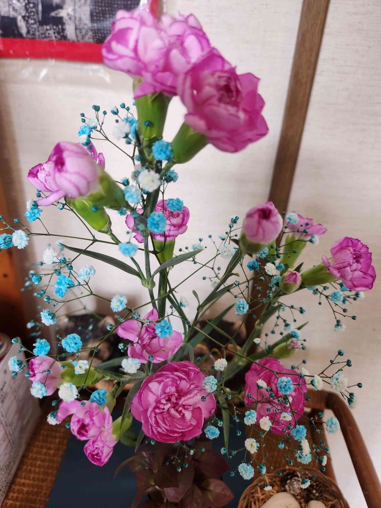 霞草のブルーがアクセントになってますね😄💙🩷❣️✌️👏👏