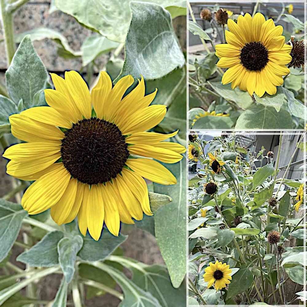 それらの白妙の大きな葉間から、大きな真っ黄色な花弁を持つ舌状花が、その中心部の筒状花は黒紫で、その鮮やかなコントラストを限りなく見せつけていた。