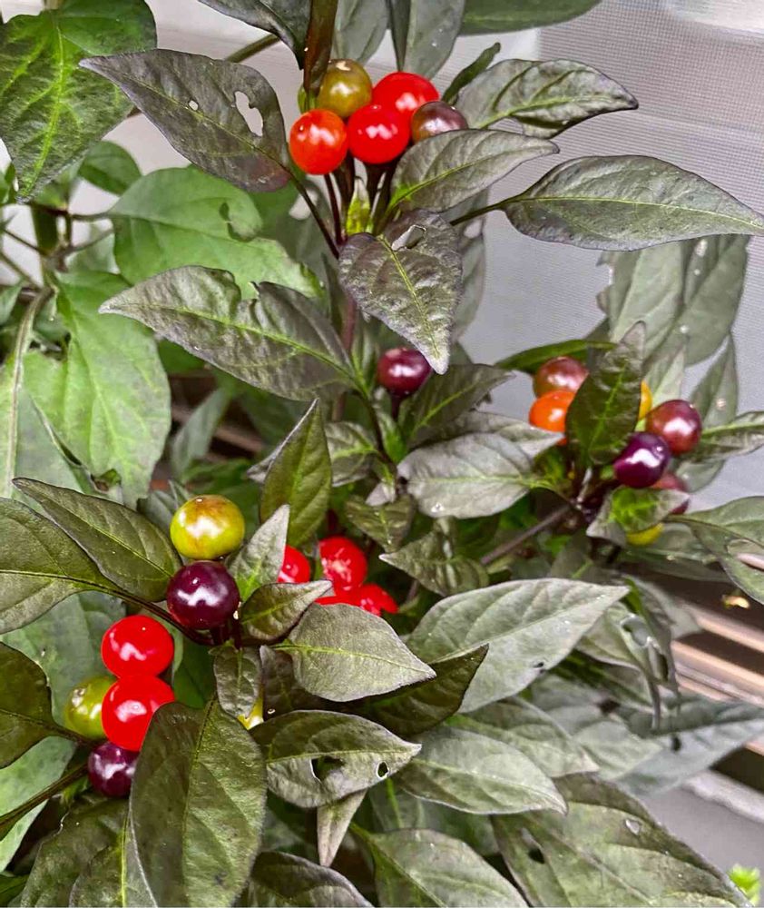 真っ赤に熟した光沢のある実は、美味しそうですが、やはり唐辛子。辛いです。