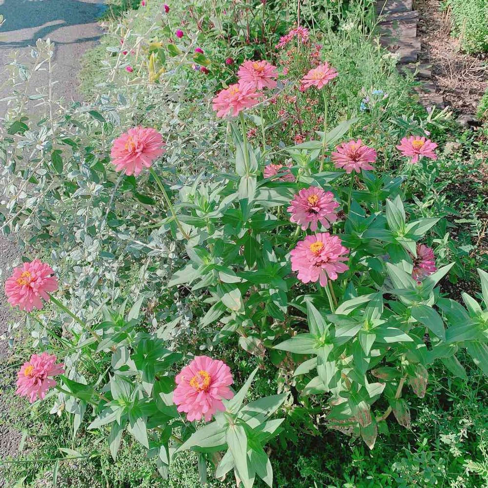 1粒のこぼれ種からもりもり咲いているジニア🌸