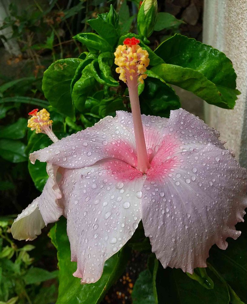 蕾も葉っぱの光沢も咲く途中も家にある普通のハイビスカスと全然違うなぁと楽しみにしていたら前投とはまた違う色になってて、ちゃんと名札の写真のような色になるのね👍