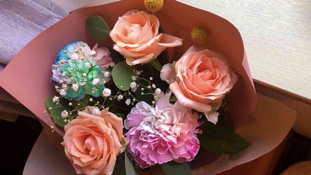 朝早くお嫁ちゃんがお祝いの花束持って来てくれました🩷