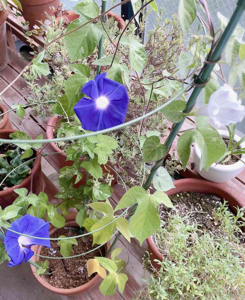 9月になって朝顔2種類、ちょっと遅いけど咲いてくれました🌺