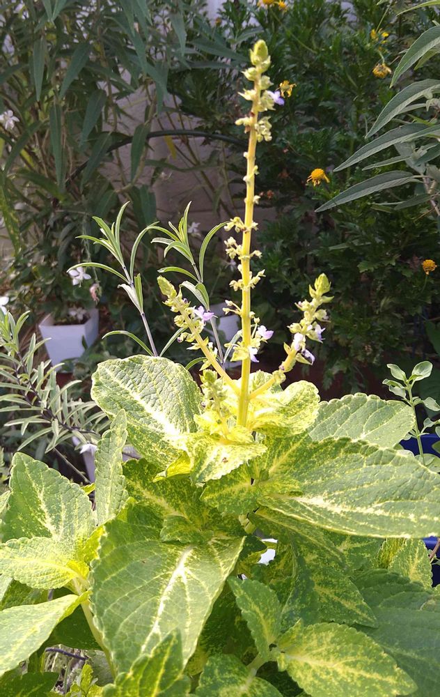 寄植えのコリウスだけモリモリ伸びてお花咲いてます☺️紫蘇のお花と似てるかな