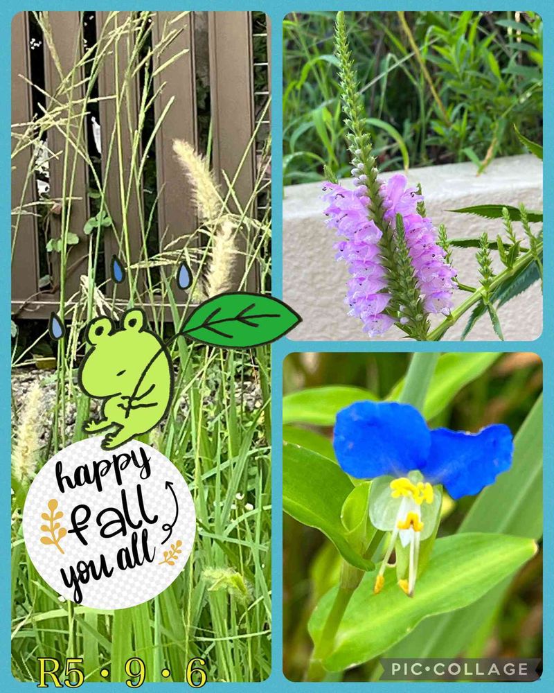 隣りの空き地に・・エノコログサ・ハナトラノオ・ツユクサが💜💙💚