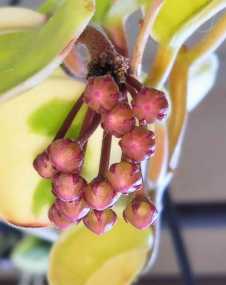 ホヤ・カルノーサ バリエガータさん(リップカラーさんじゃないです)の蕾ちゃん出来始め😻🩷💜💚💛