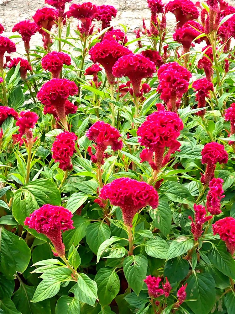 きれいな真っ赤なケイトウの花が たくさん咲いていました😀