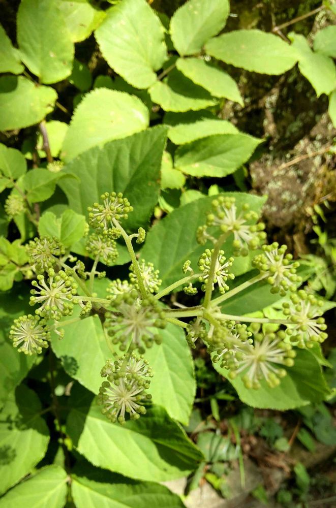 花はヤツデですけど、葉っぱは何かわからないし、ウドと言われてもいつも見る(スーパーとかで)のとも違うし、、、