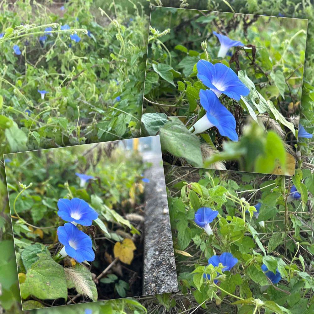 野の花に成ってしまったブルーの朝顔、なんて涼しげ💙
