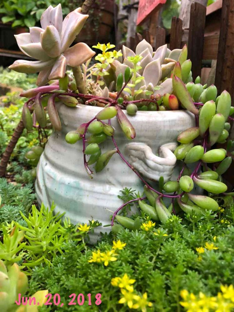 雨が上がった 夕方 多肉畑の中の寄せ植え鉢のルビネさん ♥︎