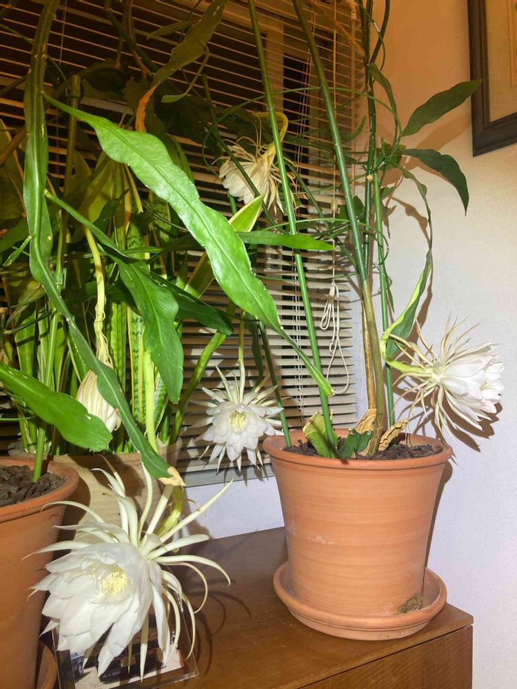 6月にずいぶん早く一つ目が咲き、その後一晩に5つ一気に咲いた月下美人🫢