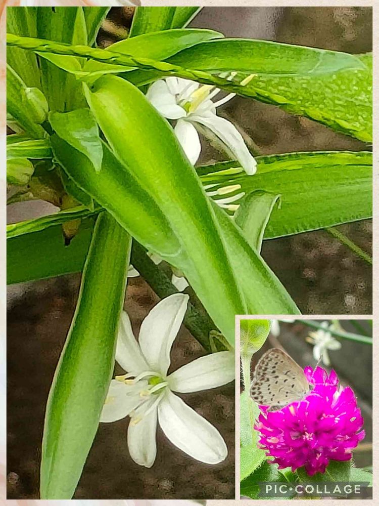 かずこさんの小さな庭,オリズルラン,千日紅とシジミチョウの投稿画像