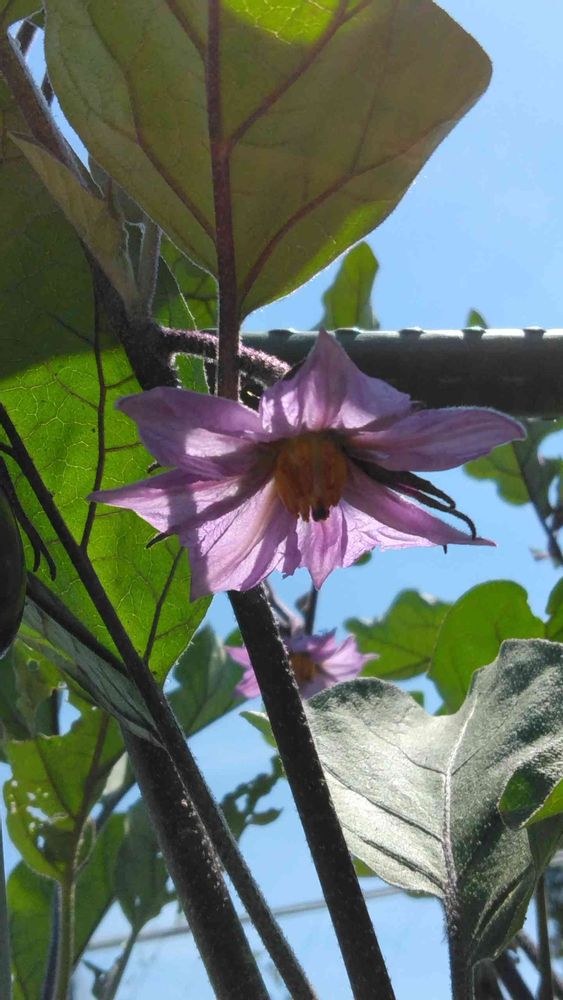 ナスの花、朝日を浴びてまぶしそう🌄🍆✨🤗
