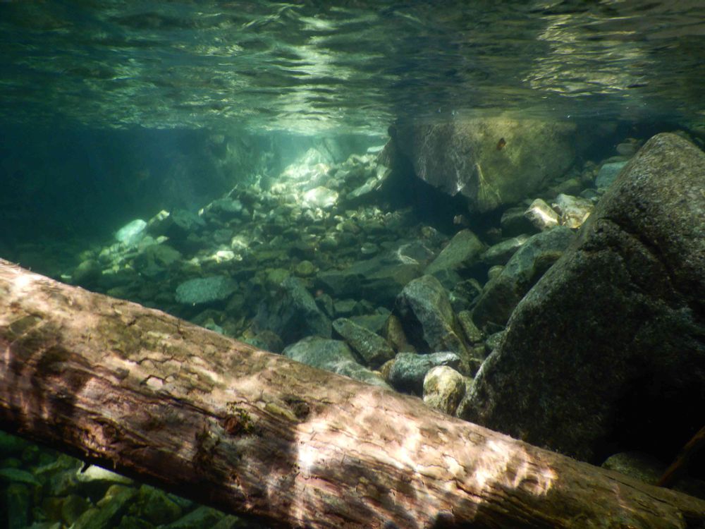 先に紹介した渓流の水中撮影です。クリアな水、泳ぎたいような綺麗な水ですが、夏でも冷たいですよ。🦈残念ながらイワナは写っていません。✌️