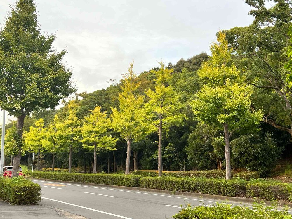 イチョウ並木がうっすら色づき始めました。