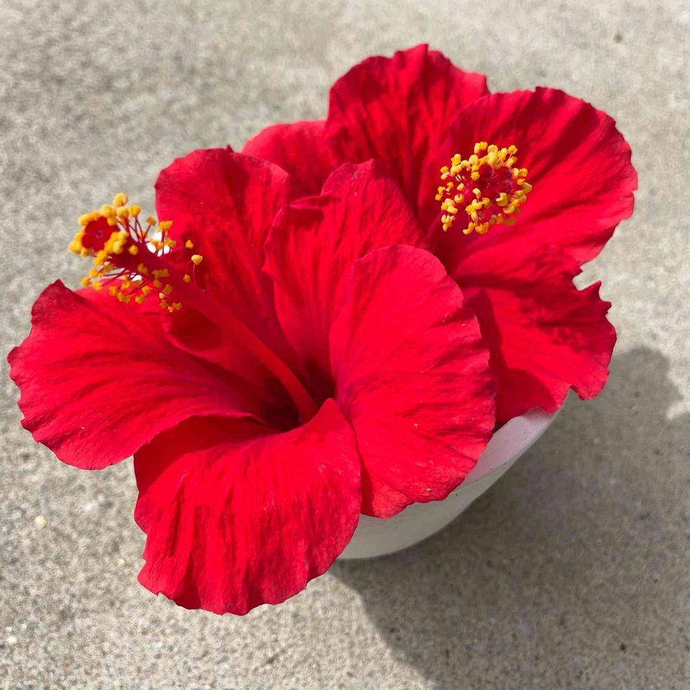 今朝咲き終わった花がらを摘んでポイってやったハイビスカスが、首チョンパのままキレイに咲いてました😳不思議〜