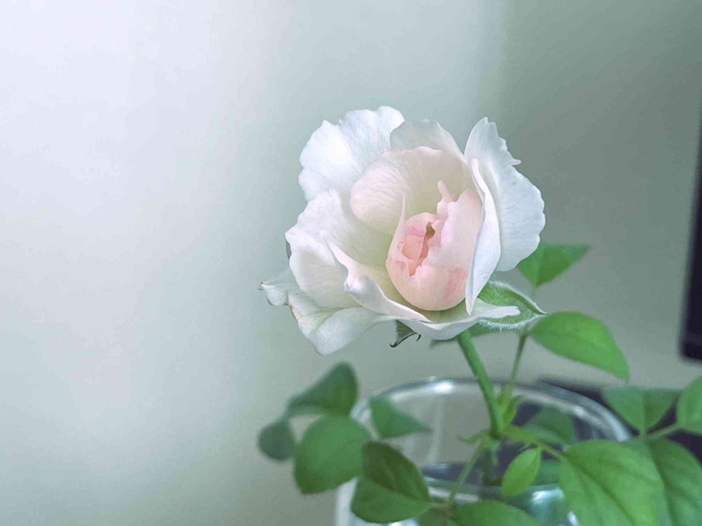 夏剪定で刈ってしまった蕾がコップで開いてくれました。小さな可愛いお花です。