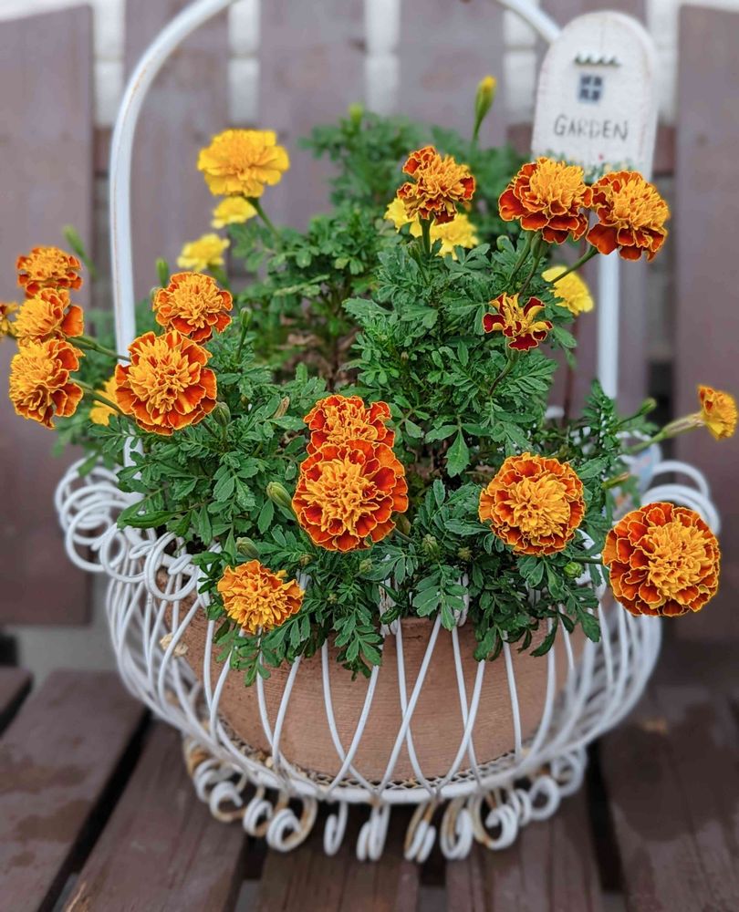 鉢カバーが,素敵〜可愛い〜マリーゴールドに,ピッタリですね〜