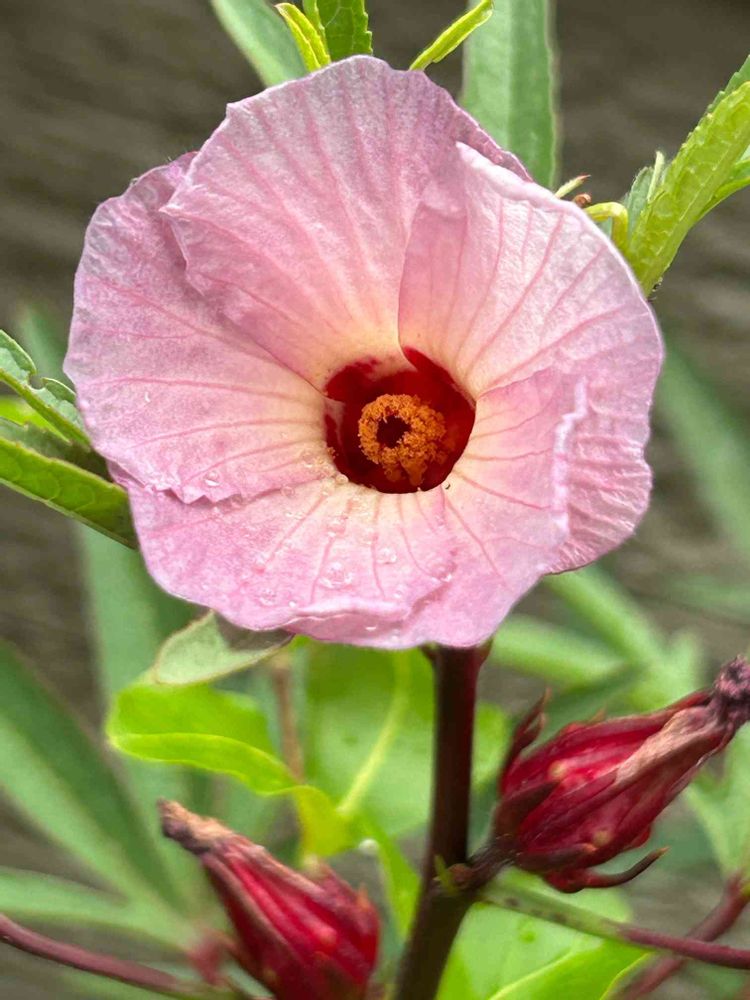 私のは昨年赤花ローゼルの苗を育てて、収穫した種で今年は育てました。