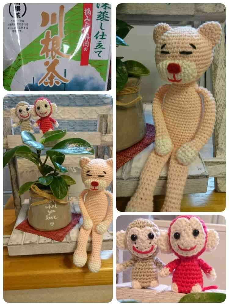 編み編みのにゃの子チャン🎵とお猿さんが来てくれましたヾ(*´∀`*)ノ♥ワーイッ