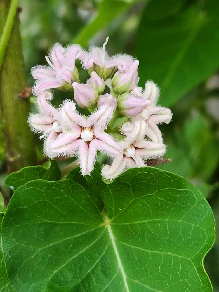 刈り取られていたピンクのガガイモの蔓が伸びてやっと花が咲きました。