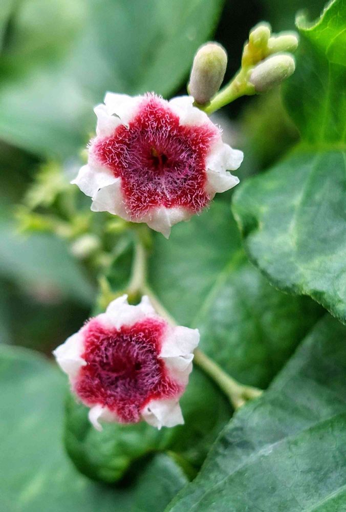 夏に中心部が赤紅色の白い小花を咲かせます💠