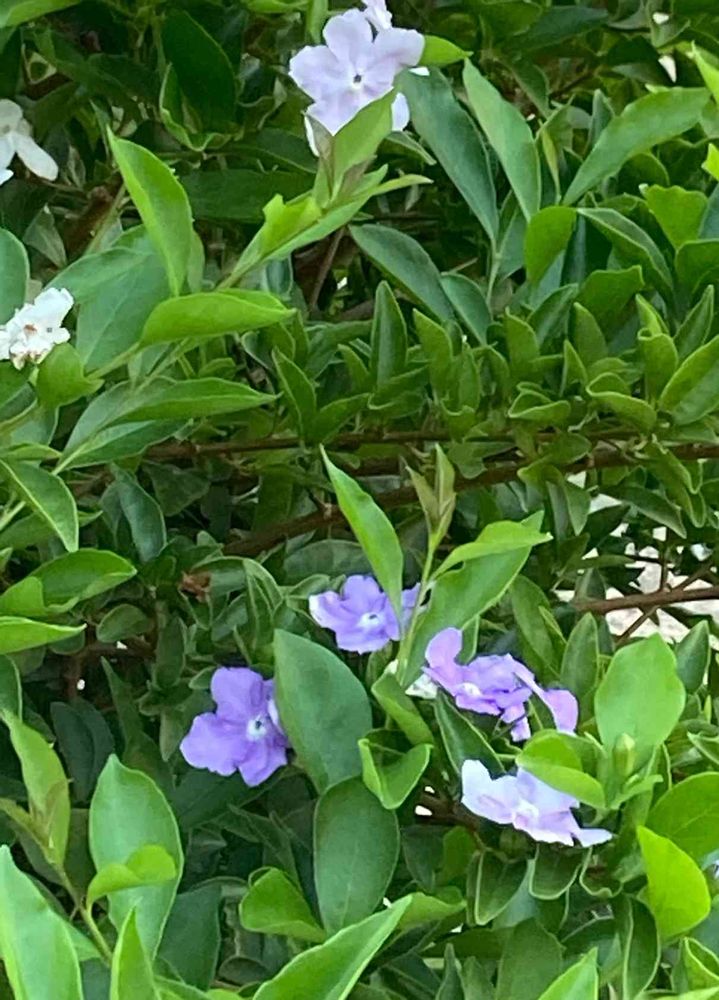 紫色から白色に花が変化します。夜間には甘い香りがします。
