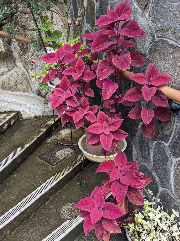 去年🪴苗を購入したら艶やかに大きく育ちしかも根強いので今年も苗を購入!!小さいのは去年冬越ししたコリウスなのよ