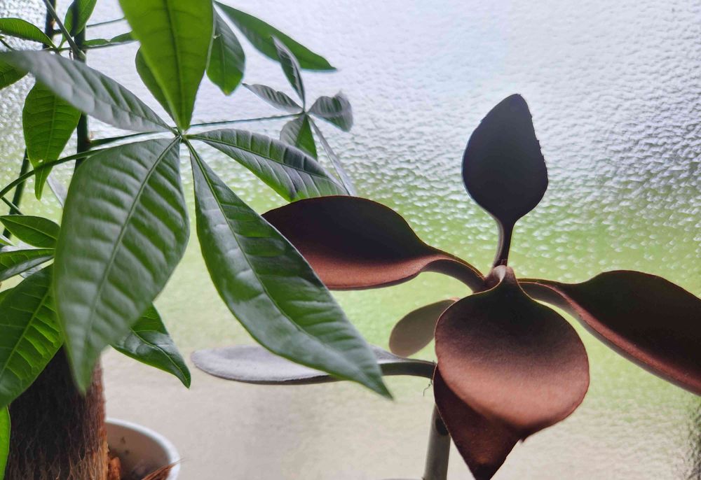 葉っぱの色合いが面白いですね。パキラさんとgoo🌿🍂