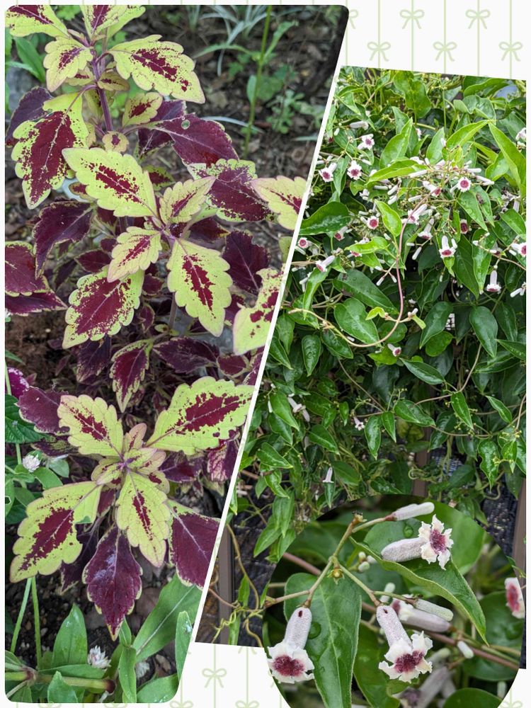 コリウスの葉っぱ🌿が モーニング☕️に行ったカフェに植えてあり、そのご近所の家🏠のフェンスに ヘクソカズラ(サオトメバナ)が、綺麗に絡みつきながら 咲いていたのでパシャリさせて頂きました𖤣𖥧𖥣𖡡𖥧𖤣